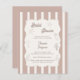A hand drawn style Bridal Shower invitation with beach, coastal theme. A soft ivory and taupe striped colored background, with an ivory frame and taupe colored elements. Personalize and add her name and the party details.