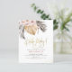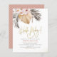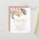 El diseño rústico y elegante de la ducha para bebés, con letras de escritura dorada modernas y un ramo de flores acuáticas. La vegetación se encuentra en la esquina superior izquierda, con hojas de palmera secas, pampas, palmeras, orquídeas y flores rosas. "¡Hola bebé!" aparece abajo en caligrafía de moda con los detalles del evento debajo en una tipografía simple. En la esquina inferior derecha hay un falso purpurina de oro para equilibrar el diseño y añadir un poco más de brillo. Las tarjetas se revertirán a un color bohemio rosado polvoriento con un patrón de baldosas blancas. Editable en línea, simplemente cambie la redacción de los cuadros de plantilla proporcionados. ¡Diseñe sus propias invitaciones impresas y personalizadas! Esta temática de vegetación desértica es perfecta para las duchas de primavera, verano y otoño. Como parte de la selección presupuestaria de Zazzle, esta hoja no es un tamaño de invitación estándar ni una calidad de papel. Si quieres este diseño en una tarjeta de invitación, puedes encontrarlo en nuestra tienda o usar la Máquina Zazzle Make para transferirlo al producto de tu elección. Siéntase libre de enviarme un mensaje para hacer juego de ducha para bebés, tarjetas de recetas, tarjetas de agradecimiento, carteles, inserciones o cualquier otra idea personalizado que tenga - ¡estaré encantado de ayudar!