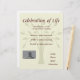 Diseño del árbol de la vida en el fondo de este folleto de invitación a la Celebración Conmemorativa de la Vida que está totalmente en personalizable con su texto. Reemplace la plantilla de "su foto" con su propia foto si lo desea, o simplemente elimínala si no quiere una foto. Una celebración de un evento de vida es una manera maravillosa de compartir recuerdos y rendir tributo a un miembro de la familia o amigo, ya sea además, o en lugar de, un servicio funerario tradicional. Por favor, contáctame en el enlace "creado por" que aparece a continuación si quieres ayuda con la personalización.