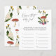 Magnífica invitación con temática de hongos con dientes de agua flores silvestres y bayas, mariposa, hongos de mariposa y agria de mosca.