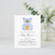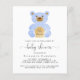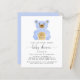 Una bonita y económica invitación a la ducha para bebés, que incluye una acuarela de osito de peluche azul pastel y dorado. Personalice el texto del oso con un nombre o deje en blanco. "baby ducha" está escrito en un guión elegante con chispas.
