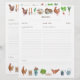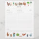 Un inserto de carpeta de papel de receta rústica con un pollo de mercado de agricultores de granja y otros elementos pintados a mano, respaldo de recetas de cocina familiar. Obra original de Caroline Bonne Müller
