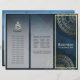 Yoga Fitness Studio / Instructor de Meditación / Entrenador personal / Entrenador de vida / Healer / Reiki Master / Masaje Terapia Tri-Fold Brochures Plantilla - Moda moderna Relieve metalizado dorado Faux Símbolos de Mandala Floral sobre el fondo del patrón de onda azul de la Marina.
