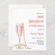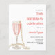 Una invitación moderna, elegante y glamurosa para una fiesta de cumpleaños de Perlas y Prosecco (a cualquier edad) Un fondo blanco con un vaso, flauta de burbujas rosas y perlas. El nombre está escrito con una escritura de estilo con letras a mano moderna. Personalice y agregue los detalles de su fiesta. 1 hoja = 1 borde impreso de invitación al borde.