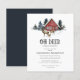 Invitación Baby Shower con tema de ciervos presupuestales de Woodland -Oh ciervo, un bebé está casi aquí Invitación de Baby Shower- La plantilla de invitación de Baby Shower incluye una familia de ciervos pastoreando en un lecho de nieve recién caída cerca de una cabaña roja con altos eververtidos y tipografía caprichosa. ¡Qué encantadora manera de enviar invitaciones para su evento tan especial, perfecto para una ducha de bebé en invierno! La invitación forma parte de una colección.