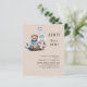 Para una ducha de bebé celebrando a un niño. Un fondo beige, un marinero de peluche. Personalice y agregue el nombre de la futura madre y los detalles del fiesta. Texto: Ahoy. It's a Boy! 1 hoja = 1 borde impreso de invitación a borde.