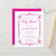 Esta moderna ducha de bebé chica tiene un maravilloso borde garabato de curvas dibujadas a mano y arcos en rosa caliente. Personalice el texto escrito a mano en rosa caliente con el nombre de la futura madre y todos los detalles importantes. La parte posterior de la tarjeta es rosa intenso.