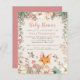 Invitación Baby Shower de Chica de Fox de época. Una alternativa económica para SMALLER de 4,5" x 5,6". Disponible en un ALMACENAMIENTO DE TARJETAS SEMI GLOSS 110 lb o en un SATIN FINISH DE PAPEL DELGADO DE 80 lb. Los sobres son un extra opcional. Este diseño de estilo vintage tiene un zorro lindo que alcanza su pico por detrás de flores y follaje. Puede personalizar fácilmente todo el texto según sus propios requisitos. En la parte trasera hay un fondo de coral de coordinación.