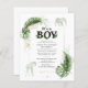 Girafa con temática de bosque silvestre, y elegante chile de safari de niños con ducha con jirafa, elefante, Relieve metalizado de oro y hojas verdes. Perfecto para las invitaciones a la ducha de bebé de un niño