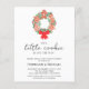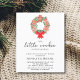 ¿Planeando un Navidad/ducha de bebé de vacaciones? Esta sencilla y moderna invitación está decorada con una corona acuarela festiva de galletas de jengibre, ungüento, follaje de pino y un arco rojo. Dice "Nuestra pequeña galleta está en camino" en elegante tipografía de escritura. Personalizable fácil. Acuarela original © Michele Davies.