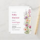 Un fondo blanco moda. Decorada con flores silvestres de color rosa, morado y amarillo. Personalice y agregue el nombre de la madre para ser y los detalles del fiesta. 1 hoja = 1 borde impreso de invitación al borde.