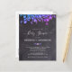 Invite a sus amigos y familiares a su ducha de bebé con esta pizarra rústica con eucalipto, postales elegantes pero casuales invitadas a la ducha de bebé. Estas tarjetas postales de la invitación a la ducha de bebé de bajo presupuesto deben ser enviadas por correo como postales sobredimensionadas, por lo que pueden incurrir en cargos de franqueo estándar, pero no necesitan un sobre o una etiqueta de dirección de retorno. Personaliza con nombre, fecha de la ducha de bebé, ubicación y cualquier otra información. Añadir sitio web y cualquier otra información en la parte posterior. Estas originales invitaciones a la ducha de bebé causarán una impresión duradera. DERECHOS RESERVADOS © 2020 Judy Burrows, Black Dog Art - Todos los derechos reservados. Invitación a Baby Shower púrpura de eucalipto rústico presupuestado