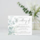 Invitación a matrimonio de código QR azul de eucalipto de presupuesto. Un precio económico menor 4,5" x 5,6" alternativa. Disponible en un ALMACENAMIENTO DE TARJETAS SEMI-GLOSS de 110 lb que es la opción predeterminada (más grueso para las invitaciones), O UN ALMACENAMIENTO DE PAPELES DELGADOS SATIN FINISH DE 80 lb (ideal para los gabinetes). Añada su código QR a su sitio web boda en la parte posterior, lo que hace que sea una opción conveniente para sus invitados a RSVP y vea todos los detalles sin necesidad de tarjetas de detalles y RSVP separadas. Puede crear códigos QR en línea de forma gratuita. Simplemente busca "creador de código QR" y surgen muchas opciones para crearlas gratis. Un diseño elegante con un delicado eucalipto deja a la izquierda y se desvanece en un tono y luego parcialmente sobrepuesto por el texto a la derecha. El Boda de está en un elegante guión escrito a mano. Personaliza fácilmente el resto del texto a tus propios detalles.