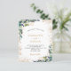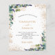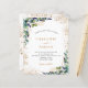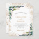 Un fondo blanco decorado con vegetación eucaliptos y follaje dorado. Personalice y agregue sus nombres y detalles del boda. Letras de color negro y dorado.