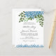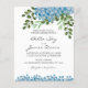 El diseño es elegante e incluye hortensias azules, follaje y vegetación. Personalizable completo, haga clic en el Personalizar Más adelante para cambiar el estilo de letra, el tamaño y el color.