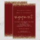 Purpurina de oro Fronteras compromiso con la invitación de Borgoña. Un tamaño mayor de 5,5" x 8,5" a un precio económico, en una BOLSA DE TARJETAS SEMI GLOSS de 110 lb, ideal para invitaciones, aproximadamente con el mismo espesor que una postal, o un elegante stock LINEN de 110 lb - para un lujo, ligeramente más delgado a un gran valor. TENGA EN CUENTA QUE LOS ENVELOPES OPCIONALES SON UN POCO MÁS GRANDES DE TAMAÑO A 6,75" x 9" aprox. Esta alternativa de tamaño de presupuesto también está disponible en otras opciones de papel. El papel FELT de 100 libras es de color buff, NO blanco, por lo que añade un toque rústico. El material de papel MATTE 80lb es blanco brillante, para impresión crujiente, ideal para menús y programas, mientras que el papel SATIN de 80 libras es delgado y liviano, ideal para gabinetes. Las fronteras de los confeti de purpurina de oro de Glam están en la parte superior e inferior y también en la parte trasera. El compromiso se basa en un estilo moderno de escritura a mano. Personaliza fácilmente el resto del texto a tu propia persona.