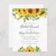 Invite a amigos y familiares a honrar a la futura novia con esta asequible invitación a un brunch con un ramo de girasoles.