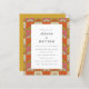 Trae algunas vibraciones groovy de los años 70 a tu evento con esta divertida invitación de boda inspirada en el retro, colorida y brillante naranja, rosa y amarilla.
