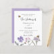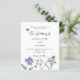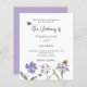 Un fondo blanco. Decorado con abejas y flores silvestres pintadas en violeta y rosa. Personalice y agregue sus nombres y los detalles.