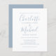 Con nombres de estilo característico, esta elegante invitación a una boda azul polvorienta con presupuesto puede ser personalizada con su información en letras de moda. Diseñado por Thisisnotme©