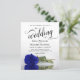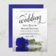 Esta sencilla pero hermosa invitación a una boda económica presenta un diseño elegante con un único rosa de color azul real o cobalto de tallo largo y una elegante caligrafía de escritura. Con un precio asequible, esta invitación es la solución perfecta para elegancia y gracia sin quebrar el banco.