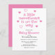 Invitación de Baby Shower Chica rosa con la frase 'un pequeño amor está en camino'.