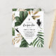 Invite a su familia y amigos a su evento con esta invitación de confirmación de personalizable. Cuenta con ilustraciones acuarelas de hojas tropicales y plantas con falsas hojas de Relieve metalizado dorado y acentos acuarelas de pincel negro. Perfecto para el verano y para eventos tropicales. Personalice esta invitación de confirmación tropical añadiendo sus detalles.