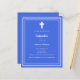 Un fondo azul real, decorado con un marco blanco, y una cruz blanca Personaliza y añade el nombre y los detalles. Texto blanco. 1 hoja = 1 borde impreso de invitación al borde.