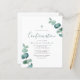 Una invitación a confirmar el toque verde del eucalipto. **POR FAVOR LEA ANTES DE COMPRAR** 1. La papelería presupuestaria mide 4,5" x 5,6" y encaja dentro de un sobre A6. Puede agregar sobres blancos a su pedido. 2. Cada hoja es un artículo - no se requiere ningún corte. 3. El material de cartón predeterminado es blanco brillante con un acabado semi-brillante y peso de 110 libras, que es adecuado para el papel. 4. La opción de papel satinado es un papel más delgado de 80 libras, que se parece más a las páginas de revistas que al material de cartón. 5. Si haces cambios y el diseño está recortado o no aparece en la pantalla, por favor utiliza el servicio de diseño en vivo para ayudarle a arreglarlo. 6. Su pedido va directamente a las impresoras. Lo que ve en la pantalla es lo que se imprimirá y se le enviará. Compruebe tres veces si hay errores ortográficos o información incorrecta antes de realizar el pedido.