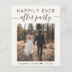Elegancia de crema ligera asequible o pequeña invitación boda e invitación a la recepción. La parte frontal muestra su foto, "Feliz eterno después del Fiesta" en una mezcla de tipografía simple y un guión elegante con toques y tu nombre y fecha de boda. Al contrario, personaliza tu invitación matrimonial y la invitación a la recepción con más detalle, sube tu código QR del sitio web boda para que los invitados puedan escanear las fotos de tus bodas, todos los detalles y el RSVP en línea, y agrega tus nombres en un guión parecido a una firma.