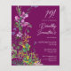 Flores silvestres rosas, violetas y amarillas con un ambiente exótico y tropical crean una audaz declaración cuando se colocan sobre un fondo morado. El texto en negrita blanco y la caligrafía realmente aparecen. Este artículo forma parte de la colección Flores salvajes moradas amarillas.