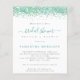 Invitación a la ducha de novia verde azulada Purpurina. Un precio económico menor 4,5" x 5,6" alternativa. Disponible en un ALMACENAMIENTO DE TARJETAS SEMI-GLOSS de 110 lb que es la opción predeterminada (más grueso para las invitaciones), O UN ALMACENAMIENTO DE PAPELES DELGADOS SATIN FINISH DE 80 lb (ideal para los gabinetes). Los sobres son un extra opcional y son algo más grandes que el tamaño de la tarjeta. Estilo espumoso para su brunch y burbujeante con un falso purpurina de borde verde azulado a ambos lados, y Bridal Shower en un guión estilo escritura a mano. Personaliza fácilmente el texto a tus propios detalles. También puede cambiar el texto y los colores de fondo a través de la opción personalizar adicional si lo desea.