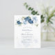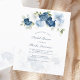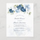 Personalizar esta tarjeta de invitación de presupuesto para ducha de novia haciendo clic en el botón "Personalizar" de arriba. La tarjeta presenta una moda moderna y elegante, con flores azules polvorientas de color blanco, azul claro y verde oliva. CONSEJO: Ideal para fiestas sorpresa, duchas para bebés, recepción de bodas y fiestas jubilados.