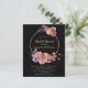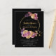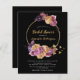 Este presupuesto invitaciones a la ducha de novias negras - presenta la corona de oro, pampas, frutas y gotas doradas de bohemio floral sobre el fondo negro. El reverso de esta invitación es negro lacónico.