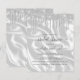 Moda, diseño moderno con un fondo de seda blanca o satén con un borde superior de goteo de purpurinas plateados. Las palabras "ducha de novia" y el nombre de la futura novia aparecen en el guión de caligrafía minúscula con toques decorativos al principio y al final, con el texto restante en letra sans serif. El fondo blanco de satén y el borde de goteo del purpurina plateado se repiten al revés. (Para mantener los enjambres, reemplace sólo las letras del nombre de la futura novia, dejando los símbolos en su lugar).