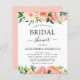 Coral de presupuesto, Peach and white Floral y Eucalyptus Greenery Botanical Boda Spring o Summer Bridal Shower Invitaciones - incluye tipografía de escritura hermosa y elegante con flores botánicas modernas y vegetación para la celebración especial de Novia a Ser.