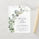 Celebra el estilo de la futura novia con nuestra magnífica invitación a la ducha de novias con eucalipto. Este bonito diseño cuenta con elegantes hojas de eucalipto sobre un fondo suave y neutro, lo que lo convierte en la elección perfecta para una ducha de novia con temática botánica. Haga que el día especial de la futura novia sea aún más memorable con nuestra impresionante invitación a la ducha de novias con eucalipto. Con su hermoso diseño y opciones de personalizable, es la manera perfecta de compartir la alegría y la emoción de los próximos nupciales con la familia y amigos. ¡Elige la tuya!