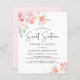 Elegante y amigable con el presupuesto, invitación a la fiesta de 16 cumpleaños con delicados ramos de acuarela de flores rosadas y coralinas con acentos dorados y "Sweet Sixteen" en un elegante y ventilado guión. Personalice fácilmente con su nombre y los detalles del fiesta.