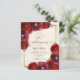 Esta elegante invitación a la fiesta de cumpleaños número 40 incluye rosas rojas acuarelas con vegetación con un falso borde dorado y fondo. Personalice todos los detalles de su fiesta en la caligrafía de escritura moderna.