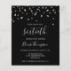 Este moderno diseño presenta un falso confeti triangular de plata sobre un fondo negro. La palabra "sesenta" aparece en un elegante tipo de letra gris claro. Personalice la invitación con el nombre del invitado de honor en letra de escritura a mano gris claro, junto con la fecha, el lugar y otros detalles en tipo serif gris claro.
