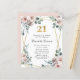 Presupuesto 21º Cumpleaños Dusty Rosa Floral Eucalyptus Gold Party Invitación... Nuestra asequible invitación de boho estilo 21st Birthday party incluye polvorientas rosas rosadas y arreglos de vegetación de eucalipto en un marco geométrico de Relieve metalizado metálico dorado que bordea tu texto personalizado de invitación. Encima del texto de la invitación hay un gráfico con el número de oro 21 que añade a la lujosa sensación de esta invitación de fiesta de cumpleaños única. La parte trasera de la tarjeta es un delicado rosa rubor que se encuentra dentro de los propios rosas. Todo el texto (excepto el gráfico de texto "21") se puede revisar fácilmente con sus propios detalles en la plantilla de personalización.