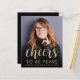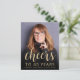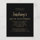 La parte delantera de esta invitación a los 40 años muestra la foto del invitado de honor con un texto de color dorado. La palabra "ovaciones" aparece en un elegante guión de caligrafía de color dorado, seguido por "a 40 años" y el nombre y cumpleaños del invitado de honor en sans serif font. Una pantalla oscura ayuda a hacer que el texto aparezca. Personalizar el reverso con el nombre y los detalles del fiesta en un fondo negro. ¡Una gran manera de celebrar a alguien que cumple cuarenta años!