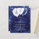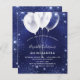 Una invitación moderna, elegante y glamurosa para una fiesta de 15 años en Quinceañera. Un fondo azul marino, decorado con finos destellos de purpurina plateado y globos blancos. El color azul es desigual. Personalice y agregue su nombre y detalles del fiesta.