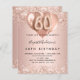 Por un elegante cumpleaños número 60. Un rosa de oro falso de aspecto metálico. Decorada con oro rosa, glitte falso rosado, chispas y globos. Personalice y agregue un nombre y detalles del fiesta. El nombre está escrito con un guión de estilo con letras a mano, número 60 con fuentes de estilo globo.