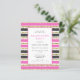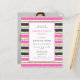 Un precio económico menor 4,5" x 5,6" alternativa. Disponible en un ALMACENAMIENTO DE TARJETAS SEMI-GLOSS de 110 lb que es la opción predeterminada (más grueso para las invitaciones), O UN ALMACENAMIENTO DE PAPELES DELGADOS SATIN FINISH DE 80 lb (ideal para los gabinetes). Los sobres son un extra opcional y son algo más grandes que el tamaño de la tarjeta. Las rayas negras y rosas de cristal para este diseño ondulado. Personalice fácilmente el texto y reemplace la foto de atrás con la suya propia.