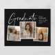Invitación a graduación de Collage de fotos con guión de presupuesto con letra manuscrita y 3 fotos en la parte delantera con nombre y detalles de graduación. La parte trasera tiene 2 fotos y detalles fiestas. Haga clic en el botón de edición para personalizar de este diseño.