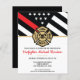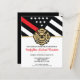 Este diseño cuenta con una bandera de bomberos con rayas blancas y negras y una delgada franja roja. "Felicitaciones" y la insignia de un bombero se sienta por encima del nombre del bombero que se graduó. Este diseño también funciona bien para los bomberos, lugartenientes o jefes que se retiran. ¡Celebren con estilo!