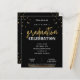 Una alternativa asequible de calidad en un papel más pequeño pero aún duradero. RECUERDE AMABLE usar el menú desplegable para seleccionar la CANTIDAD de hojas que va a comprar. Esta es una invitación a graduación moderna de guiones dorados y negros. Purpurina de imitación de oro moderno y adornos dorados. La graduación se establece en un tipo de letra moderno de escritura a mano. ¡Fácilmente personalizado!
