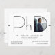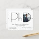 Una moderna y económica invitación para una fiesta de graduación de doctorado con un esquema en blanco y negro. Celebra que estés hecho con esta elegante invitación. Simplemente agrega tu foto e información, agrega esta invitación al presupuesto a tu carrito, y celebra este gran logro. (Esta es una invitación ligera en papel, no en papel. La opción de papel satinado es muy delgada y se sugiere papel semi-brillante). Diseño de postales de postales vacacionales para la invitación a graduación de PhD con foto moderna de presupuesto | ©Melissa Patton - Diseñador