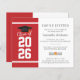 Añade tu año de graduación, nombre y detalles del lugar con fecha a este moderno y audaz fondo rojo y blanco con la invitación a la fiesta de graduación de tipografía negra usando nuestro botón "Personalizar".